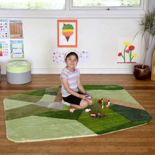 Super thick, hand carved carpet with rural landscape design to support imaginative, small world play.