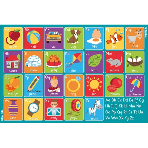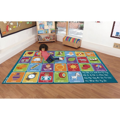 Large alphabet carpet featuring 26 placement squares. Designed specifically with Key Stage 1 Literacy Curriculum in mind, with updated imagery and refreshed colour palette.